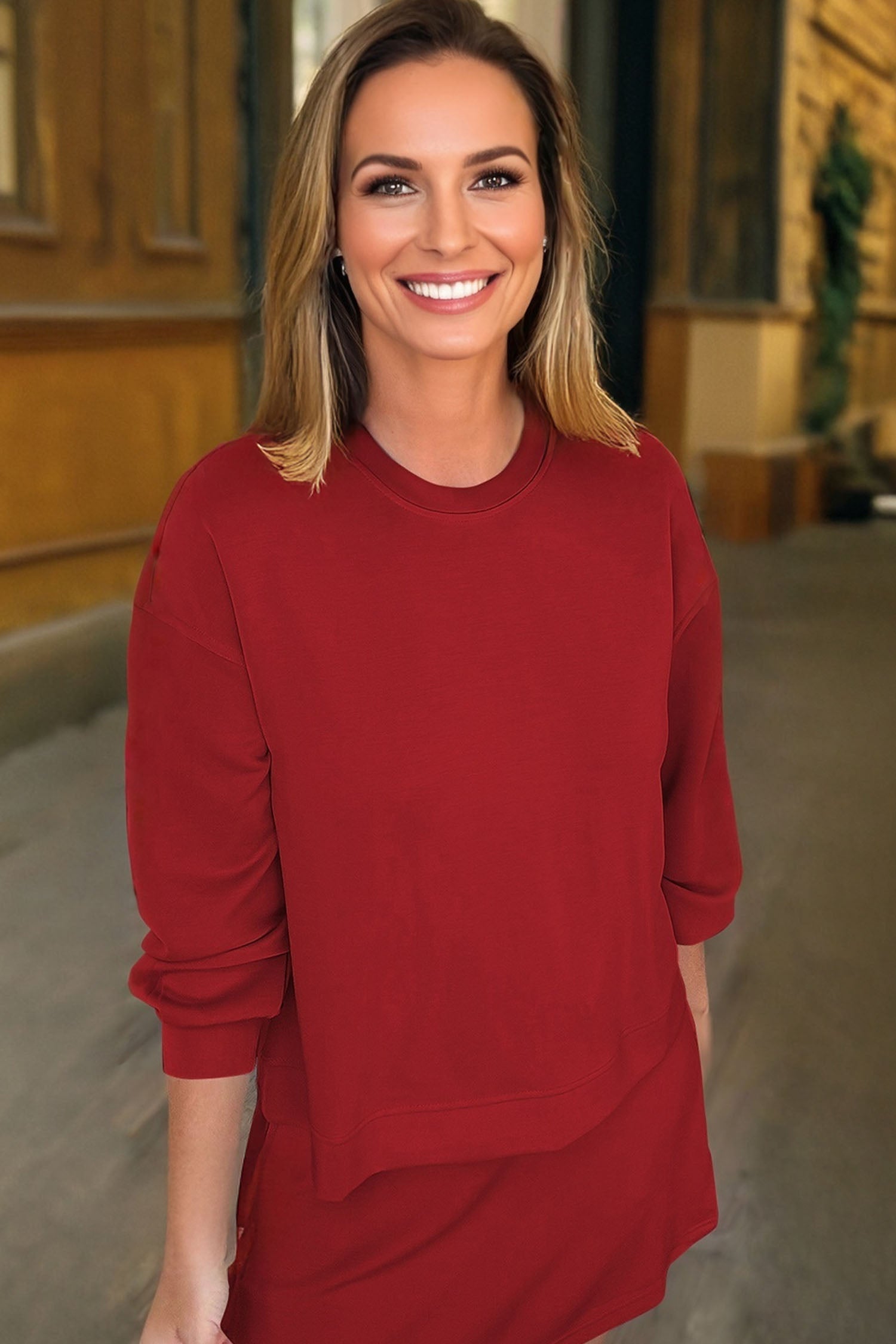 - Drop shoulder pullover offers a relaxed, laid-back vibe.
