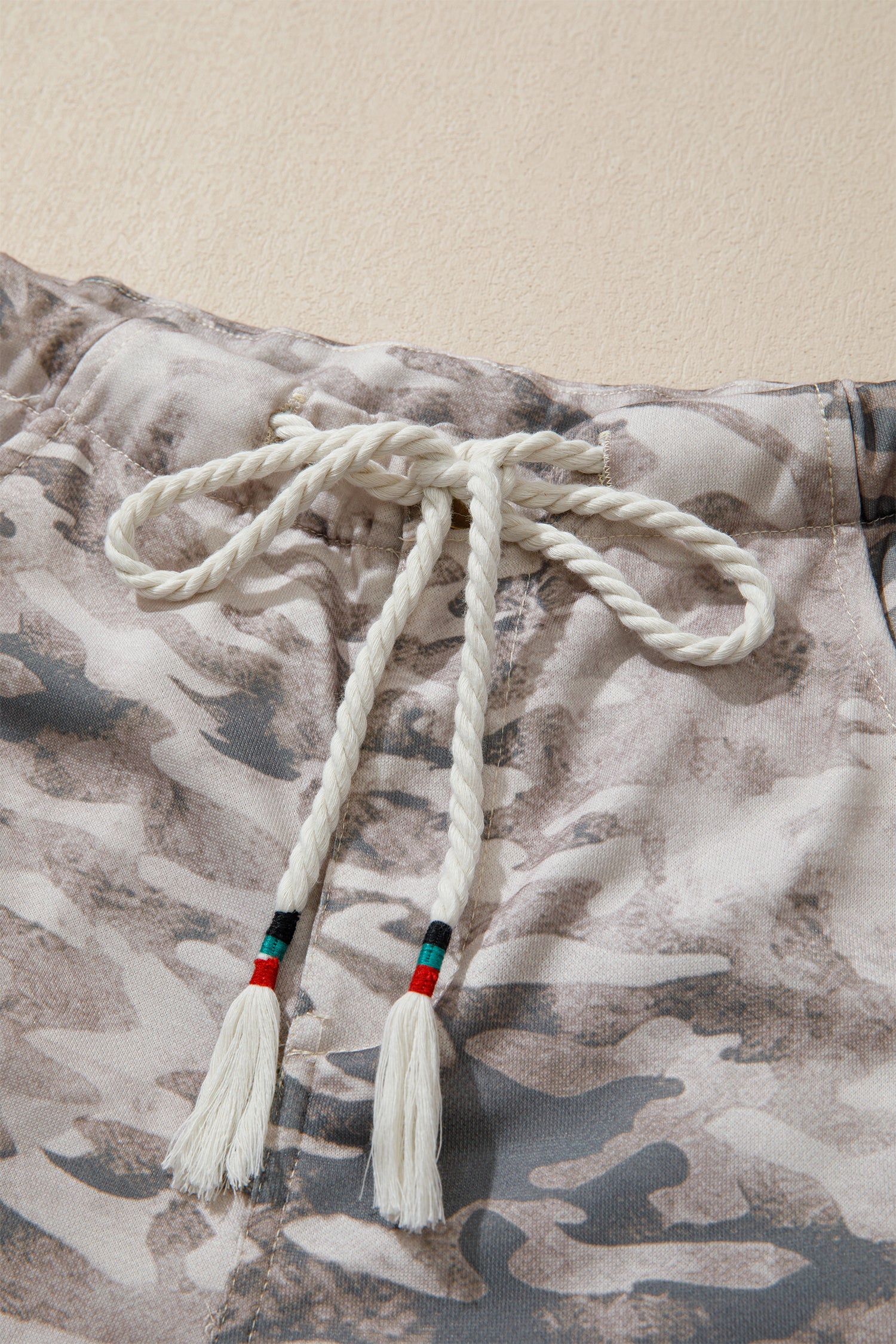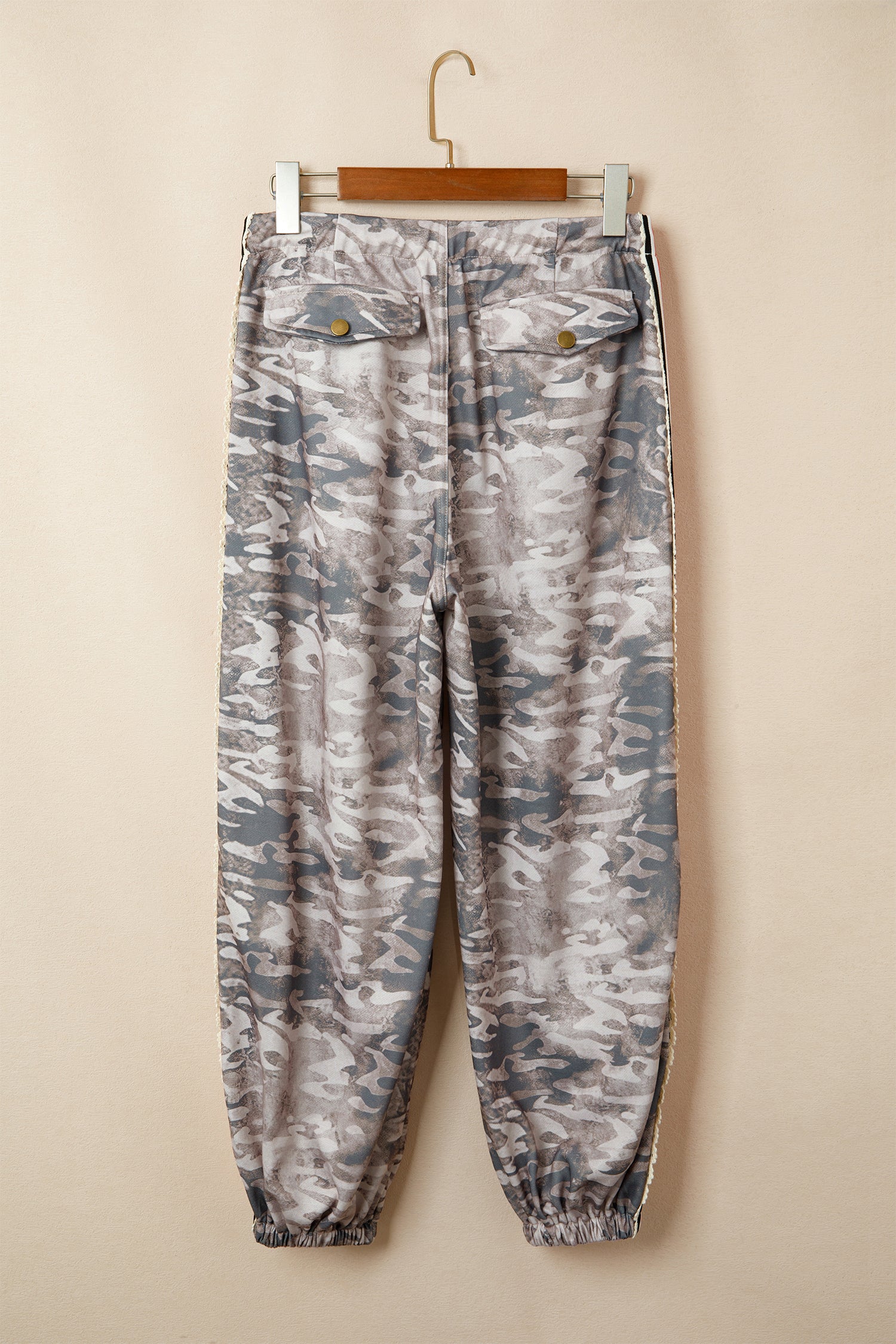 Khaki Camouflage Print Striped Side Panel Patchwork Drawstring Pants